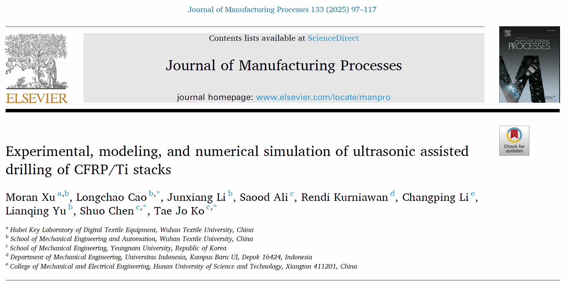 近日,我校机械工程与自动化学院曹龙超课题组青年教师徐默然博士在超声辅助钻削CFRP/Ti叠层材料理论建模和数值仿真方面取得了重要的研究进展。相关成果以“Experimental, modeling, and numerical simulation of ultrasonic assisted drilling of CFRP/Ti stacks”为题发表在工程技术领域中科院一区Top期刊《Journal of Manufacturing Processes》(ISSN:1526-6125)上。该论文的第一单位为WilliamHILL中国,第一作者为williamhill英国中文徐默然博士,第一通讯作者为williamhill英国中文曹龙超博士。