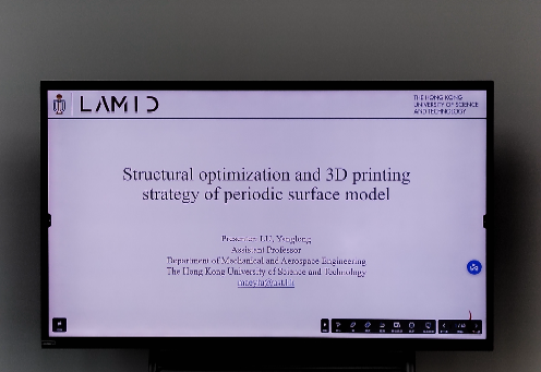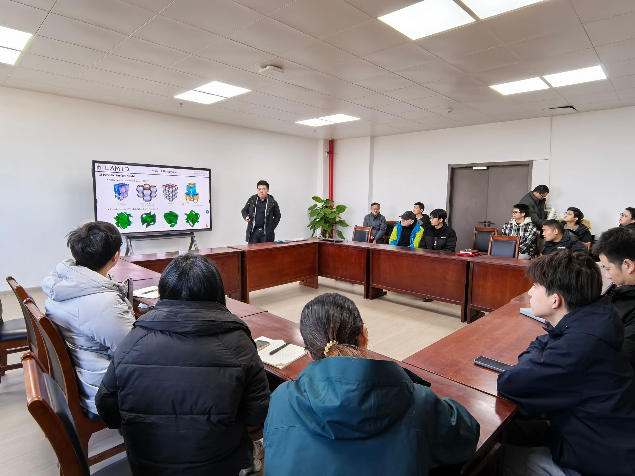 陆杨龙教授做了题为“Structural optimization and 3D printing strategy of periodic surface model”的学术报告。他介绍了周期曲面模型的应用以及实体表示方程,提出了并行形状和拓扑优化方法以及混合贝叶斯优化方法。相比于已有方法,所提方法可以同时对实体结构进行形状和拓扑优化,在大幅减少的设计空间内进行高效搜索。随后,他进一步介绍了基于均匀壁厚的3D打印策略,这种新策略优化了传统的切片策略。