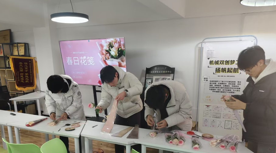 2025年3月6日下午在四栋三楼服务站中,“春日花筏”活动正式拉开序幕。活动现场,同学们认真学习修剪玫瑰茎叶、不断调整蔷薇外形,最大程度上增强美观,努力使每支花的长度与角度都经过仔细调整,并用彩纸、丝带精心包装。