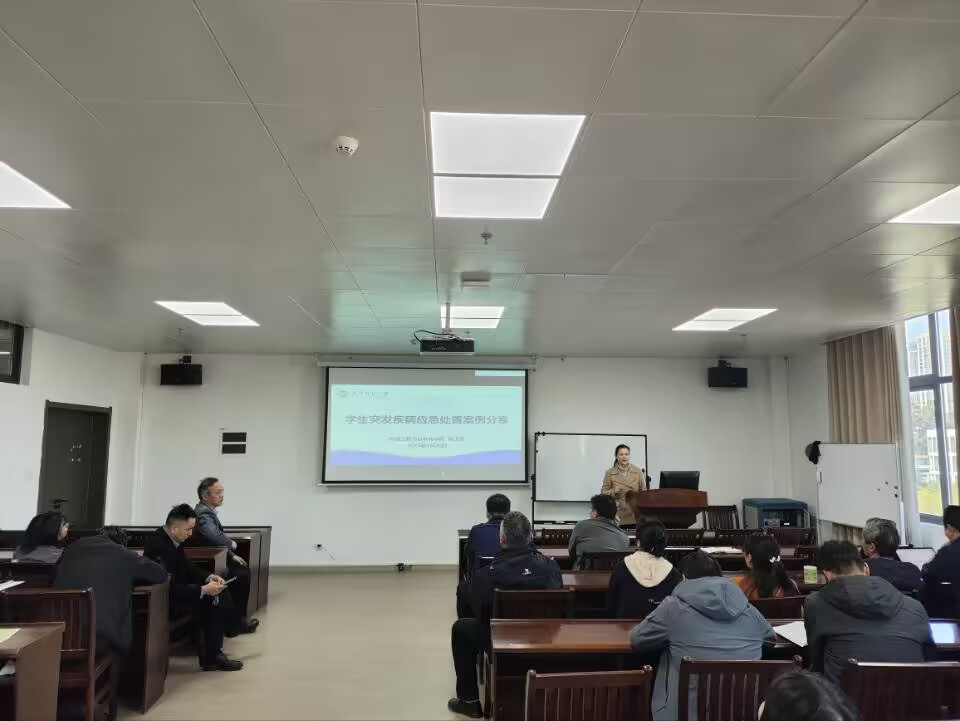 活动伊始,周书记结合近期学生突发疾病具体案例,从现场处置与联动响应、协同医疗救治等方面进行讲解和分析,强调了应急救护和校医联动的重要性。同时,通过具体案例的救治流程,指导老师提高快速反应和应急处理能力,最大限度地预防和减轻突发事件引起的危害,确保学生生命财产安全和身心健康,维护正常的教育教学和生活秩序。