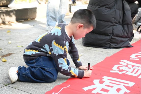 抵达花山后,志愿者们在准备好的横幅上一一签名来纪念此次意义重大的活动。拓展部负责人陈敬星表示:“每个签名都是守护青山的承诺书,我们要用实际行动为雷锋月增添亮色。”