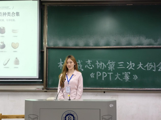 点名环节后,正式进入备受期待的PPT展示大赛。9位选手依次上台,带来了内容多元、别出心裁的分享。蔡欣玥对热门游戏《第五人格》中两个角色的深度剖析,让大家看到游戏角色背后的故事与魅力;陶鑫源带来的可爱奶龙主题,以轻松有趣的方式赢得观众的喜爱;夏湘怡通过介绍民歌,引领大家领略传统文化的深厚韵味;朱文琪对美食舒芙蕾的介绍,勾起了大家的味蕾;刘发啟借助“甲亢哥”的独特视角展现强大祖国,创意十足;肖伟对偶像欧文的分享,传递出偶像对他的激励力量;汪韵乐带来的贵州与云南美景展示,让观众心驰神往;贺灿的永夜星河主题充满浪漫与奇幻;孙梓洋关于早睡晚睡利弊的讲解,兼具实用性与教育意义。