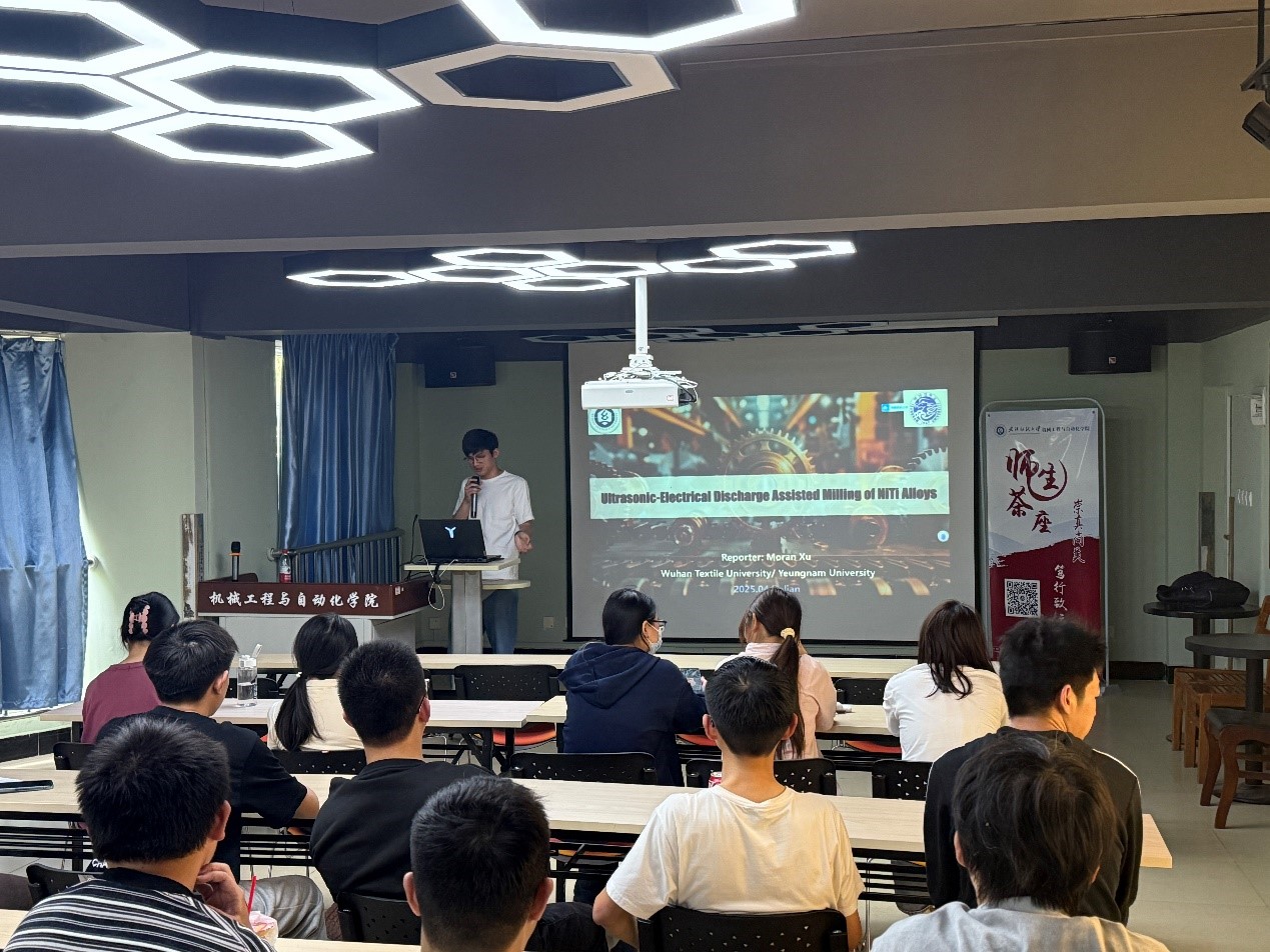 徐默然老师围绕 “航空发动机镍钛系合金的超声辅助电火花加工技术研究”展开分享。他通过动画演示和实验数据对比,展示该技术在加工效率和表面质量上的突破,介绍团队在工艺参数优化、装备研制中的创新成果。徐老师强调解决 “卡脖子” 问题需坐得住冷板凳,勉励学生培养钻研精神。交流环节,同学们就考研、考公、就业等职业发展热点问题提问,徐老师结合自身经历和专业知识详细解答。