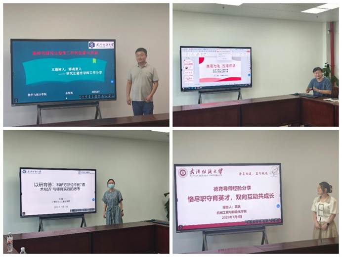 计算机与人工智能学院刘莉老师、电子与电气学院王骏老师、数学与统计学院佘智磊和机械工程与自动化学院高飘老师结合工作实际,分享了思政引领、学业发展和心理疏导等方面的做法与经验。在自由交流环节,与会人员围绕日常工作中的难点问题和具体案例展开热烈讨论,现场气氛活跃。