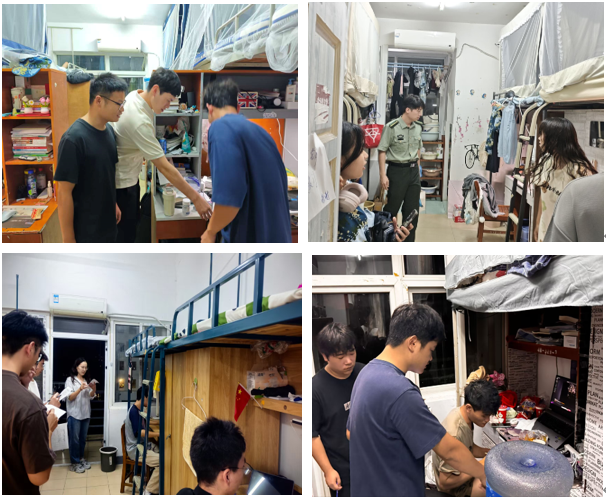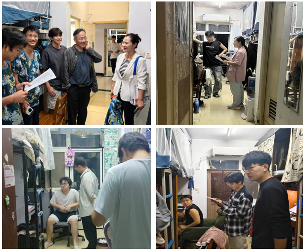 在检查走访过程中,各位老师与同学们进行了亲切的交流,对新生们的疑惑进行了耐心解答,嘱咐各位同学们在宿舍要相互帮助,共同营造一个舒适的居住环境,同时,也强调了人身安全、财产安全、注意宿舍用电安全、谨防诈骗的重要性。此外,重点针对违规使用大功率电器、私拉乱接电线、存放明火器具等突出安全隐患,各检查小组进行逐一记录并现场整改。