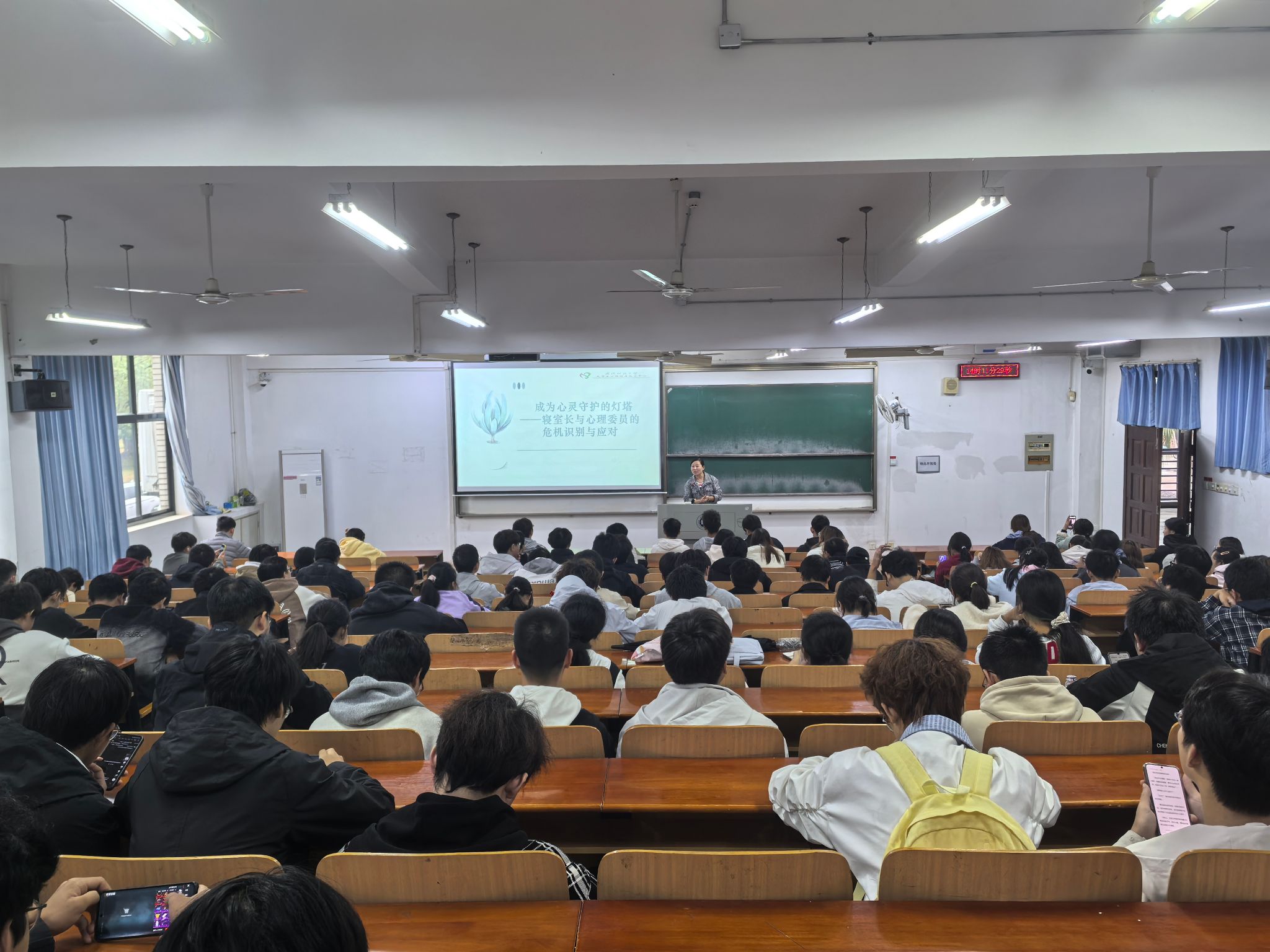 王娟老师结合当代大学生的心理发展特点与现实需求,通过高校真实心理案例深入剖析了学业压力、情感困惑、人际交往矛盾等问题的解决思路,引导学生学会换位思考、理性看待挫折。同时,向老师也为同学们进行了反诈骗意识的培训,反映了当下常见的诈骗套路和校园内的诈骗隐患。