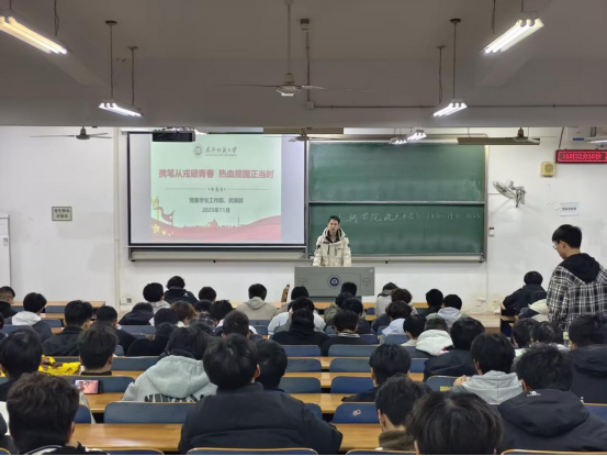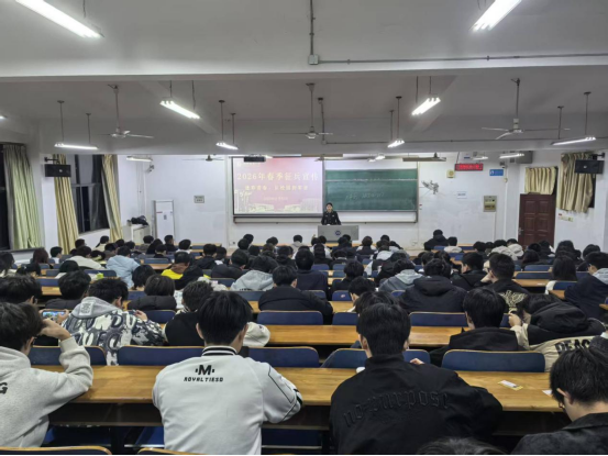 2025年11月23日,学院利用周日年级大会的契机,组织开展了首轮征兵政策集中宣讲。各年级辅导员老师面向全体适龄学生,系统解读了2026年春季征兵的报名条件、流程安排和优待政策,详细介绍了学业保障、经济补助、考研加分、就业安置等学生普遍关心的政策内容,特别是对毕业生参军在职业发展上的独特优势进行了重点说明。
