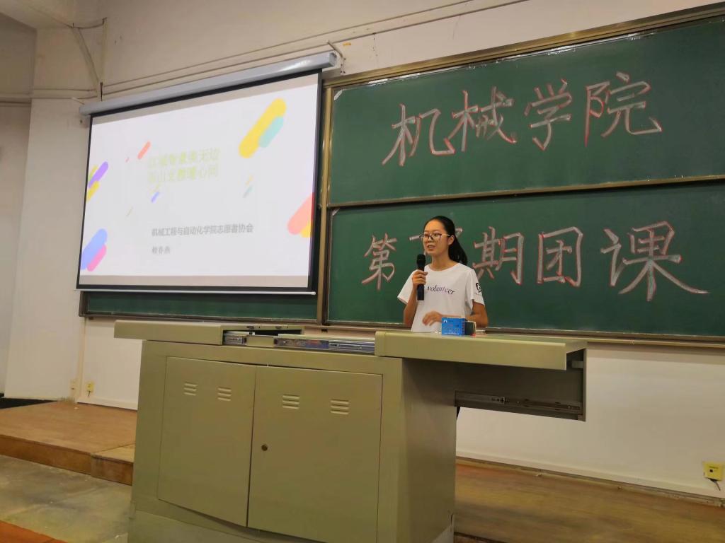 机械志协支教队建立于2013年,志愿支教活动至今已有六年之久。机械志协的同学们以PPT的形式重点介绍了我院“庙山小学”支教活动,给大家展现了支教的细节,分享了支教过程中发生过的感人故事,帮助同学们深入了解红色基因的内涵,激励大学生树立支教奉献和志愿服务精神。并呼吁同学们在学好专业知识的同时,积极加入社会实践队伍中去,在实践中提升个人基本素养。
