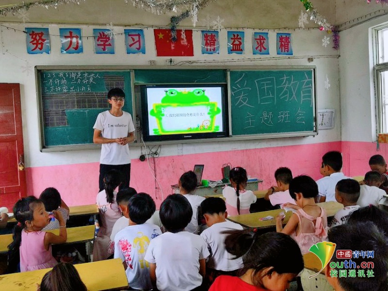 在祖国的70华诞到来之际,为庆贺祖国华诞和弘扬爱国主义精神,同时让青少年能够继承和发扬爱国主义精神。8月20日,williamhill英国中文拓梦支教队在暑期支教地安徽省亳州市涡阳县刘庄户小学举行了“青春为祖国歌唱,红歌唱响校园”的爱国主义主题教育活动。通过举行爱国主义主题班会,红歌唱响校园等形式的特色活动,让孩子们进一步了解爱国主义,从而继承并发扬爱国主义精神。穿过历史的风雨,跨越时间的长河,鲜红的旗帜上,五角星闪耀的光芒,照亮了每一个华夏儿女的心,当孩子们看到五星红旗时,希望从他们的心底可以由衷地发出“我爱你祖国”的时代最强音!中国青年网等多家重要媒体对拓梦支教队的活动进行了采访和报道。