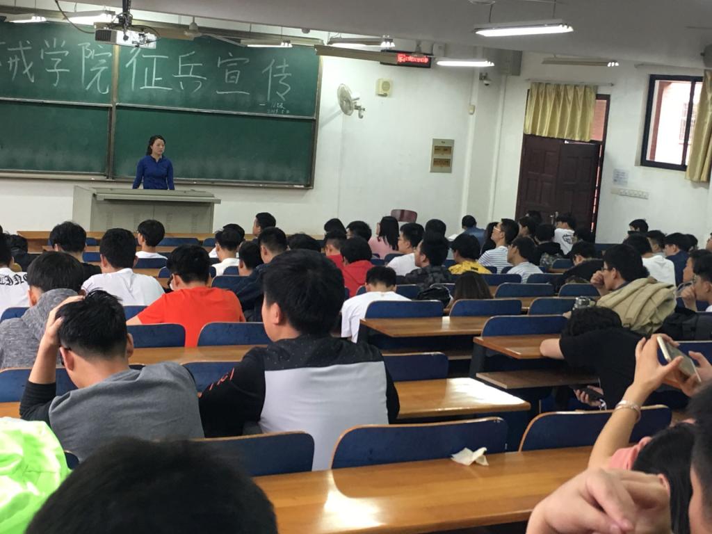 5月4日,为切实激发毕业生参军报国热情,助力实现强军目标、建设世界一流军队,williamhill英国中文利用晚点名分别对2015级、2016级学生进行了专场征兵政策宣讲活动,特别是对应届毕业生进行了深入动员。