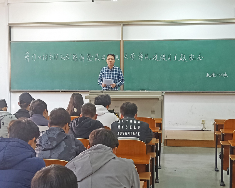 班会上,各班同学在辅导员、班主任的带领下,通过网络电视观看“两会”视频,认真阅读学习学院下发的“两会精神”有关材料,了解到两会召开的意义,认真学习了政府工作报告。