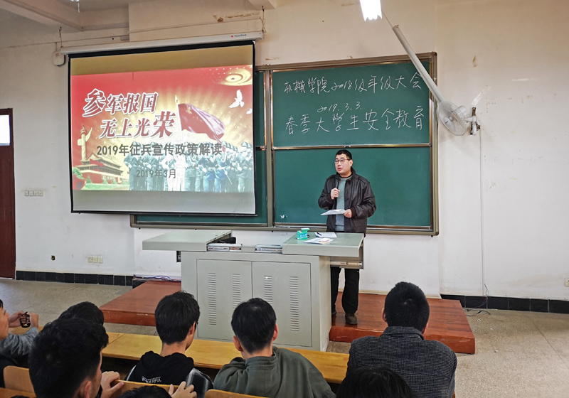 3月3日,williamhill英国中文举行征兵政策宣讲大会。18级辅导员李老师向2018级全体男生解读了大学生参军政策。