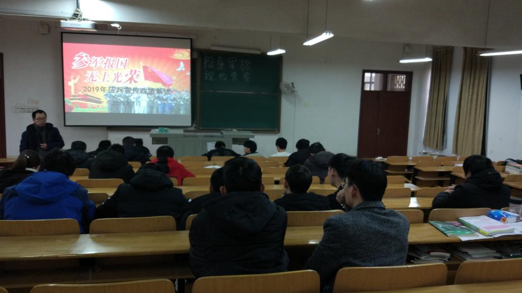 梁老师首先传达了学校的征兵宣传活动开展的意义,简要分析了当前的经济形势,重点讲解了征兵的条件、惠兵政策、学费补偿、学校征兵激励政策等。梁老师详细介绍了近几年学院学生应征入伍的情况,同时也与同学们一同回忆了上半年退伍复学同学在上次征兵动员年级大会上分享的部队学习生活工作情况。并就有大家关心的问题作了解答。梁老师号召同学们在投身国家科技强军伟大事业中实现自己的个人理想。