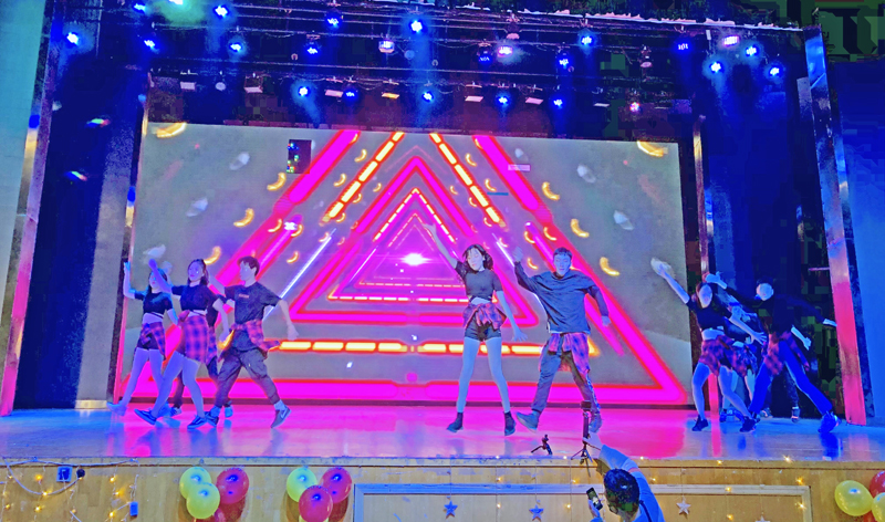 接下来的文艺演出以“博学多识,笑傲江湖”、“星光璀璨,邀约盛宴”、“岁暮天寒,温情邂逅”、“岁月如歌,不负芳华”四个篇章展开,气氛热烈,精彩纷呈,高潮迭起。既有饱含深情的歌舞表演《爱的华尔兹》展现机械学子的青春活力,又有绘声绘色的音乐剧《等我回家》以细致入微的舞姿以及动人的歌喉吸引观众的眼球,还有来自五湖四海的机械学子用各自方言演绎的《我在纺大》。精彩的节目不仅体现了同学之间的深厚情谊,更展现了机械学子勇于创新、积极向上的精神风貌。