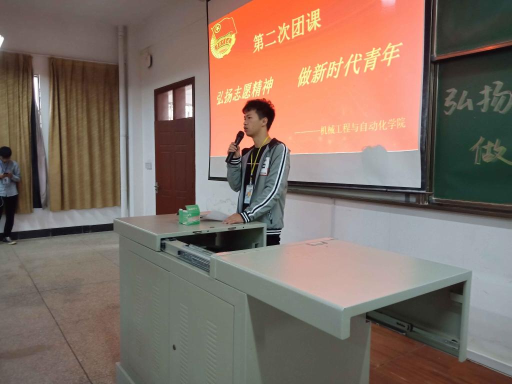 为弘扬中华民族“无私奉献·不求回报”的文明志愿精神,引导青年学生把握新时期志愿精神的时代内涵,10月25日,机械工程与自动化学院以“弘扬志愿精神,做新时代青年”为主题,在阳光校区8FT101举行了本学期第二次团课,将志愿者精神深入贯彻到学生群体中,进一步陶冶学生的精神风貌和道德情操。