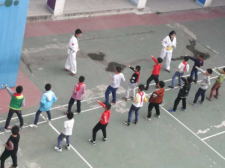 本次支教活动中主要组织小学生们展开了跆拳道、笛箫、舞蹈和英语等内容的活动。