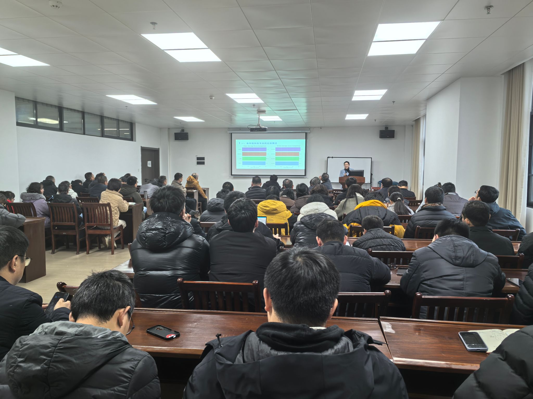 会议首先分析了2025年秋季学期期末考试成绩总体情况,对不分挂科较高的课程进行分析,并对开学初学业预警、重点学生摸排等工作进行布置,希望各位班主任老师指导学生规划新学期学业目标,帮助学生尽快调整适应学习状态。随后,余院长发言强调凝聚育人合力的重要性,任课老师在课堂教学中要关心学生,结合科研成果、学业发展等具体事例,激发学生潜能,助力学生健康成长。
