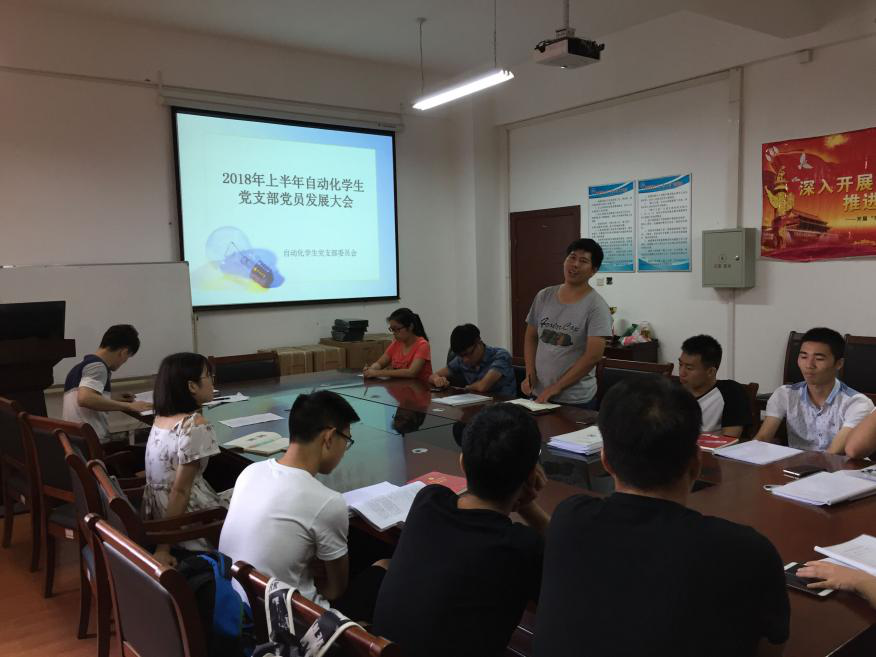 2018年6月18日下午两点,williamhill英国中文自动化党支部于8E-411召开了“2018年上半年自动化支部党员发展大会和六月政治理论学习”的主题会议。本次会议由支部书记饶老师主持,参与本次会议的还有自动化学生党支部全体同志。