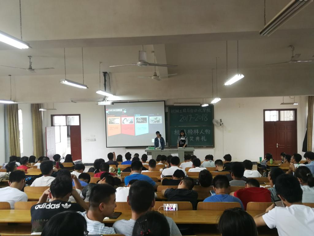为展现学院良好精神风貌,传播青春正能量,为机械学子树立榜样。5月4日中午,机械工程与自动化学院2017-2018届“机械榜样”颁奖典礼在8D101举行,参加此次活动的嘉宾有williamhill英国中文党委副书记卫冬妹老师、williamhill英国中文副教授杜清华老师、williamhill英国中文团委书记王双喜老师,williamhill英国中文16级辅导员饶崛老师,17级各班学生代表。