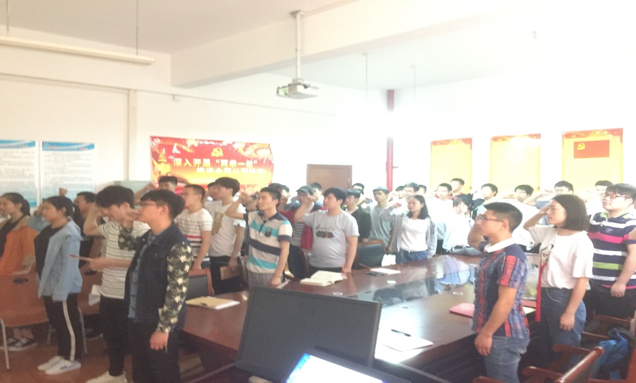 会议分为三部分进行。首先活动在庄严的国歌声中正式开始,在自动化党支部组织委员贾树林同志的带领下,全体党员重温入党誓词。