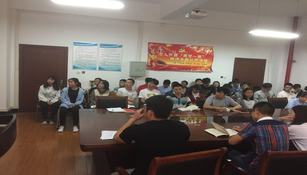 然后由李佐同志带领大家一起学习贯彻中央、省委、学校关于“不忘初心、牢记使命”主题教育相关文件精神。即什么是“初心”,学生党员及入党积极分子如何真正做到不忘初心、牢记使命。大家通过学习感悟到了我们的初心就是进入大学时的梦想,努力提高自身素质,积极学习专业知识,做好自己的本职工作,在美好的青春岁月里绽放别样的光芒。