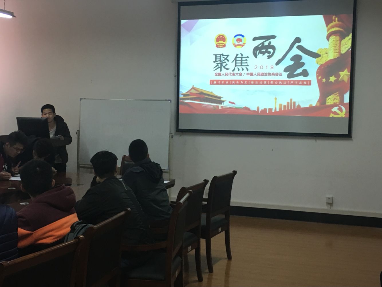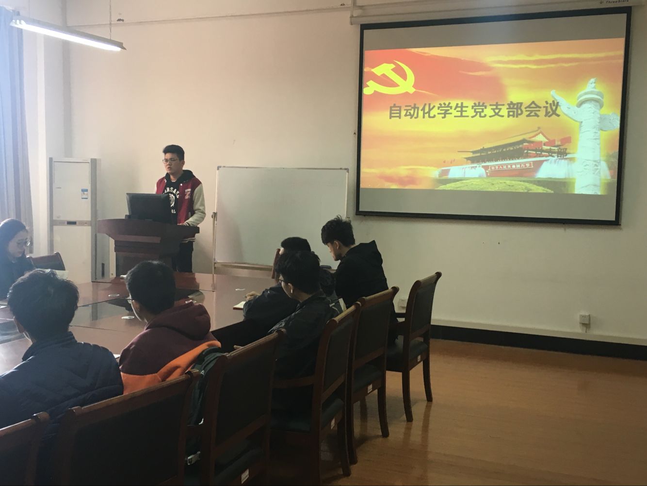 全体党员重温入党誓词后,在支部书记饶崛老师及支部副书记豆天翔的带领下,一起学习了“全国‘两会’精神 ”,接着支部书记饶老师针对自动化党支部接下来的思想理论学习和发展对象的考察提出了新的要求,要求所有的成员能主动融入党组织,积极学习相关理论知识并分享自己的学习心得。通过学习大家聚焦国家变化、政治时事、人民百态,强化了党员责任与担当,进一步完善务实与实干之风。最后两名入党积极分子姚诚和张宏伟结合学习两会精神的体会和自身的学习、思想状态对自己提出了新的目标和要求,用实际行动向党组织靠拢。
