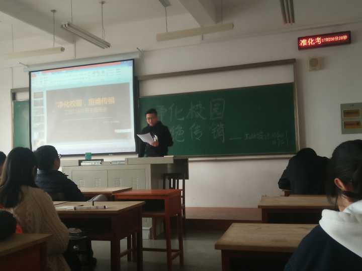 2018年3月11日下午,williamhill英国中文工业设计11601班在3栋教学楼506教室开展了以“净化校园,拒绝传销”为主题的班会。