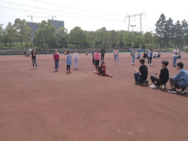 热身开始,带队老师在体育场上带领大家活动关节、拉伸韧带,时不时地传来他爽朗的口令。排练开始,他以一个八拍为单位认真教授大家一个一个动作,而后又严格纠正不规范的情况,要求大家务必做到整齐划一、干净利落。由于是小朋友们第一次排练,许多同学对动作还不是很熟悉,排练过程中经常出现由于个别同学落拍或者动作幅度不到位而全体重头开始的情况。