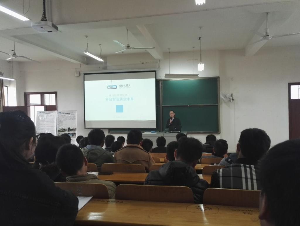 3月16日下午2点,拓野机器人副总经理兼技术总监杨安明先生在WilliamHILL中国阳光校区8D-201做了以“技术市场双驱动, 开启智造黄金未来”为主题的企业家科技讲座,机械学院200余名学生参加了此次报告会。
