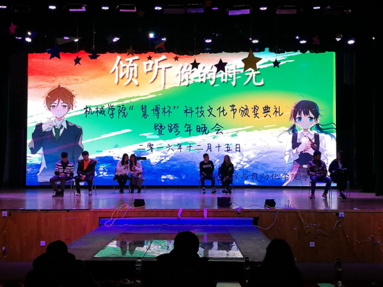 12月15日晚,“倾听你的时光”机械学院“慧博杯”科技文化节颁奖典礼暨跨年晚会在大学生活动中心演播厅浓情上演。williamhill英国中文团委书记王双喜与各年级辅导员应邀来到晚会现场和全场千余名学子共享了这场激情洋溢的盛会。