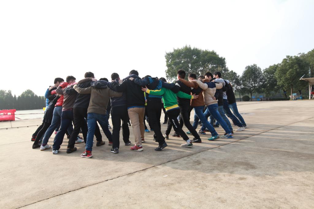 在“破冰”环节,同学们围成一个大圆圈,和自己前后的同学打招呼,为彼此捏捏肩、捶捶背、排排坐,体验亲密沟通的感觉。接下来,同学们在教练的指挥下组成各个小分队,并给自己小分队起了“老司机”、“小黄人”等活泼各异的队名。在大家同唱一首歌,同铸一造型的过程中,团队的基本意识已经深入每个同学的心中。