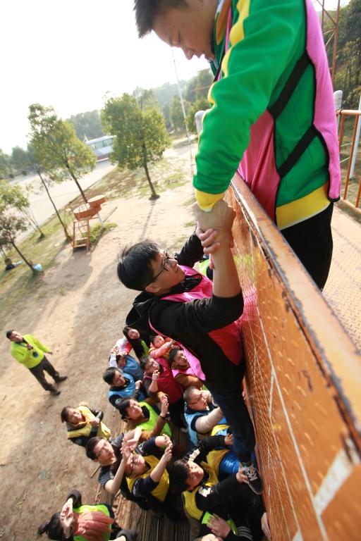 最后一项是“爬人墙”,每个人都要翻越一堵大约4米且垂直的围墙,这又是一个必须依靠集体的力量才能完成的项目。同学们通过集思广益,拟定计划,采用叠人墙的方法,让身强力壮的为底座,其他同伴踩着底座同伴的肩膀,一个一个成功地翻越了高墙。活动结束后,所有队员都为自己和团队的精彩表现鼓掌、欢呼。坚持精神,尝试精神、团队精神在这一刻显得如此光芒四射、熠熠生辉。