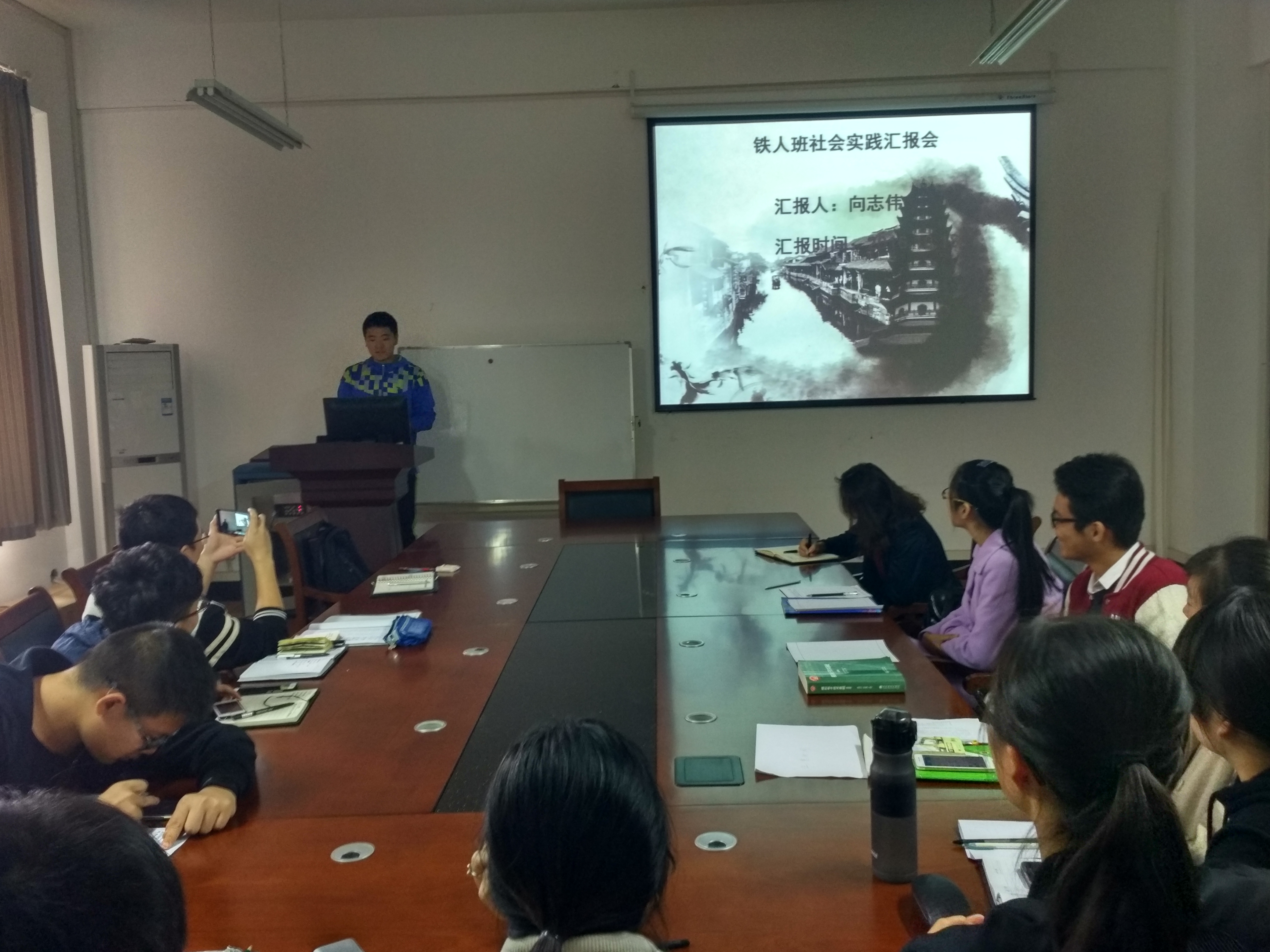 第四期"铁人班"开班以来,同学们积极参加社会实践活动丰富自己的课外活动,铁人班的每一位成员在社会实践活动里都有着不同的经历和感受。经过紧张的筹备工作后,10月25日上午10点在八栋教学楼411会议室举行了暑假社会实践汇报会。williamhill英国中文分党委副书记、铁人班班主任卫冬妹、各年级辅导员、铁人班全体成员参加了本次大会。