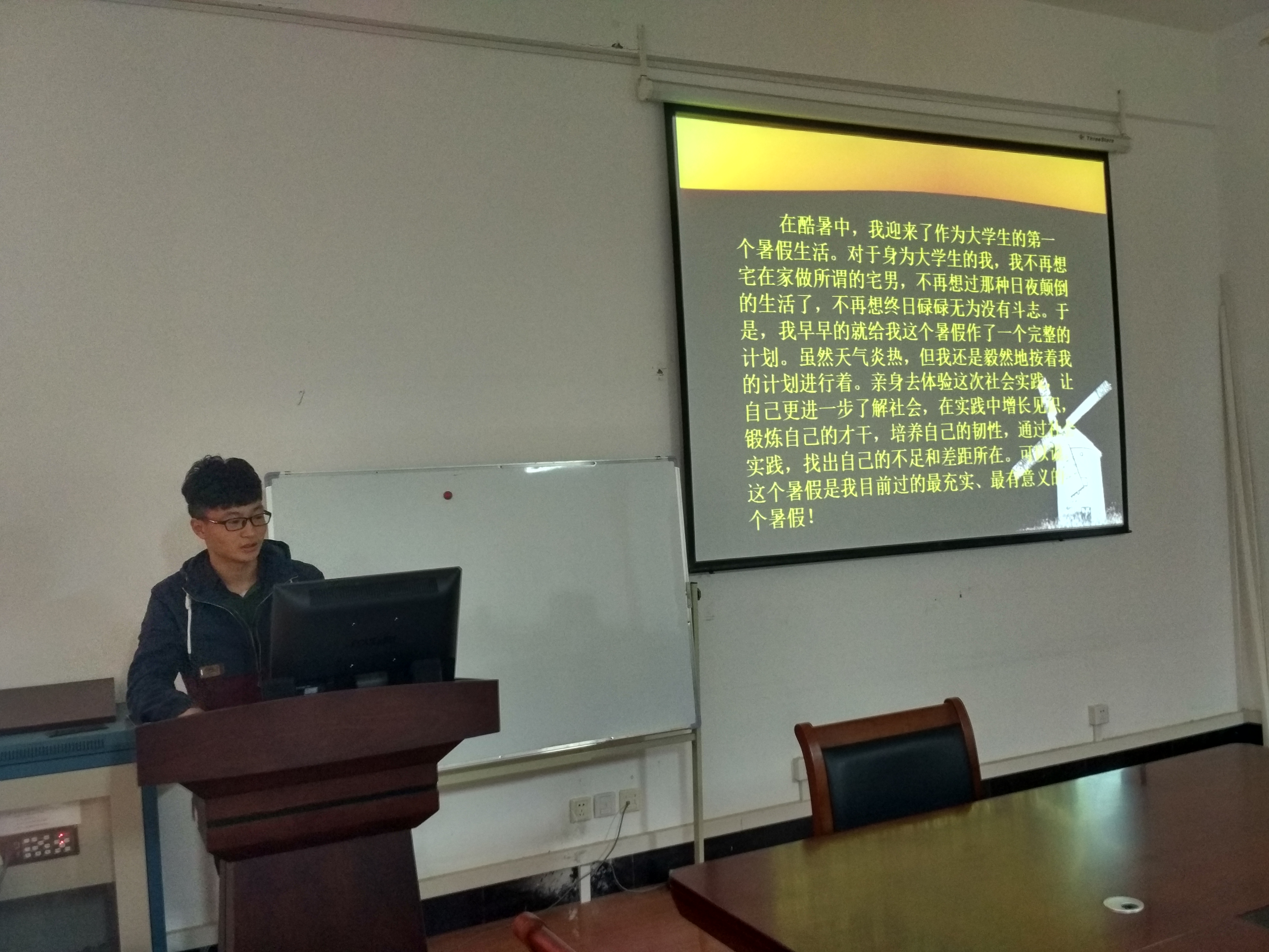 同学们依次上台进行汇报,图文并茂地展示了在社会实践活动期间的所做、所思、所感,交流了实践经验,带给我们不一样的视听感受。