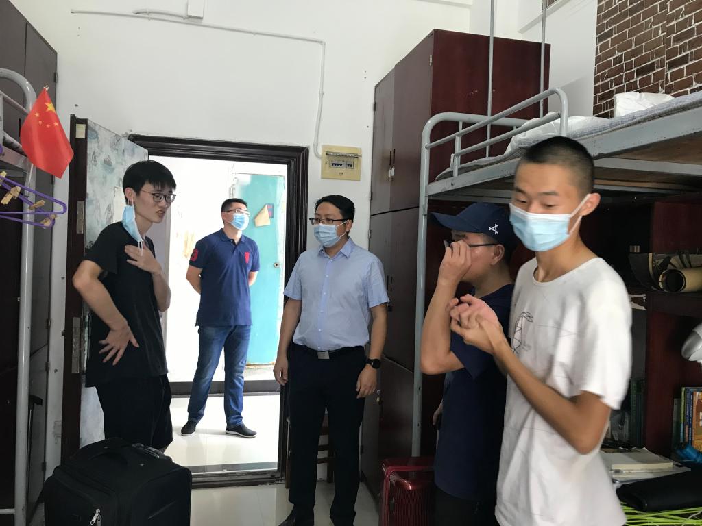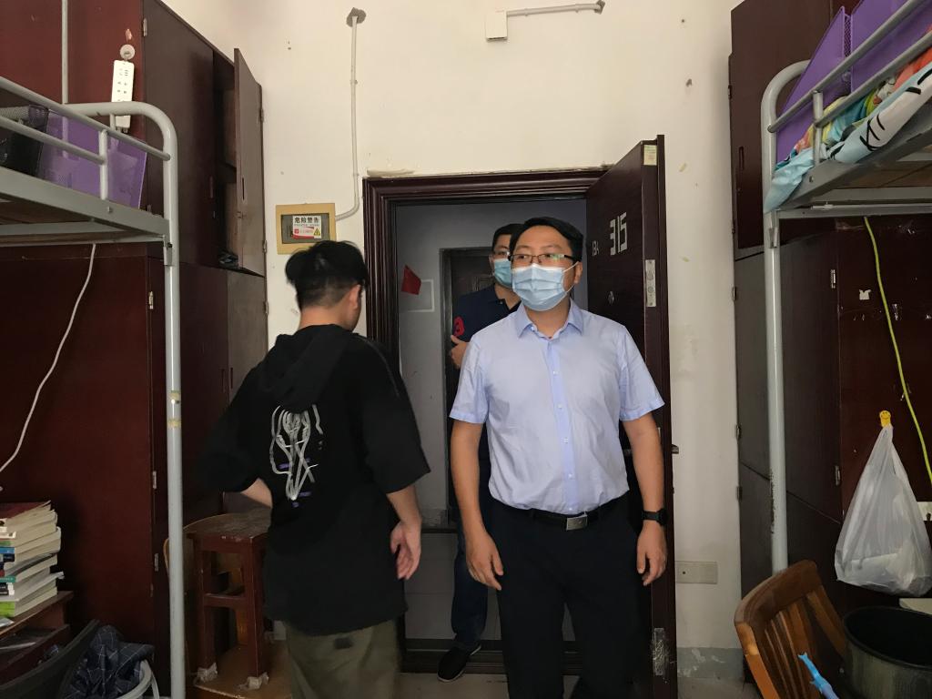 在13栋学生宿舍,刘韦副书记仔细查看了同学们返校后开展卫生大扫除的情况。刘书记提醒同学们及时晾晒、洗涤被褥及个人衣物,保持宿舍卫生清洁,注意通风。走访过程中,刘书记和辅导员还提醒同学们注意保持健康的饮食习惯,保障充足睡眠,积极参加体育锻炼,增强身体素质;注意人身、财产安全,注意防盗防骗防火,保证人身财产安全。