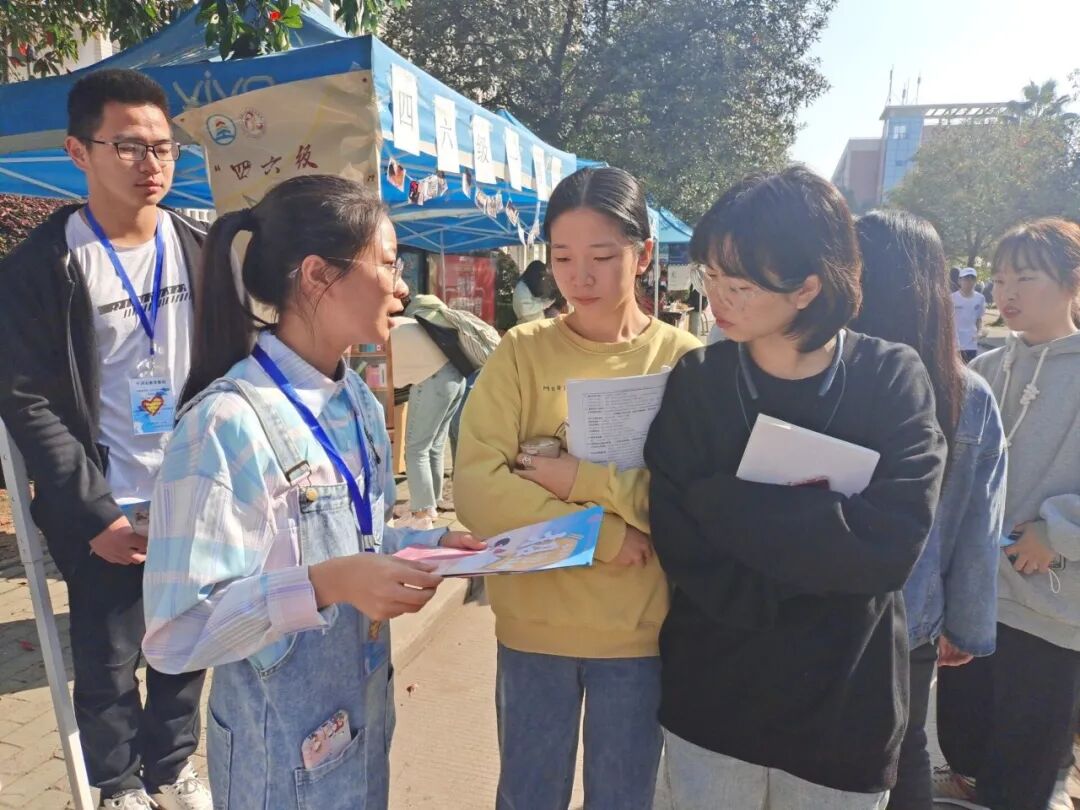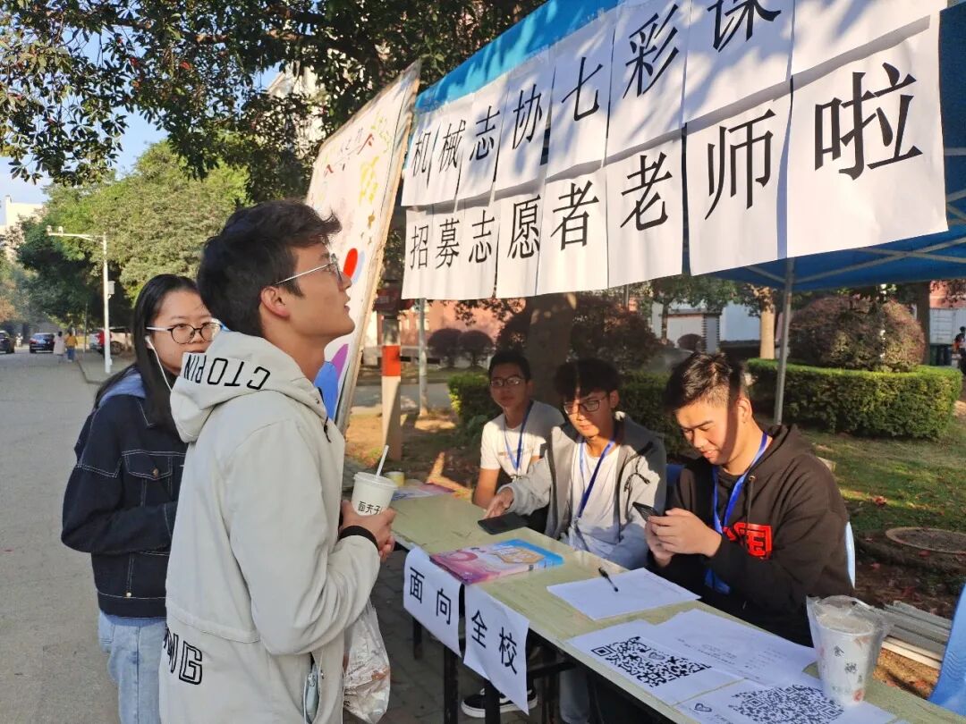 据悉,本次“七彩课堂”支教活动立足于辅导学校后勤食堂职工子女,开设学习辅导课程与课外兴趣课程,使他们在课余时间不仅可以丰富生活,巩固成绩,还可以培养他们的兴趣爱好。由于疫情,今年“七彩课堂”活动将在校内进行,但志愿者们对本次活动的热情丝毫未减。经过线上宣传与线下志愿者们热情的介绍,许多同学来到摆点处咨询“七彩课堂”老师招募活动的详细情况,并表示有意向成为一名志愿者老师,共同传播“无私奉献·助人为乐”的志愿者精神。