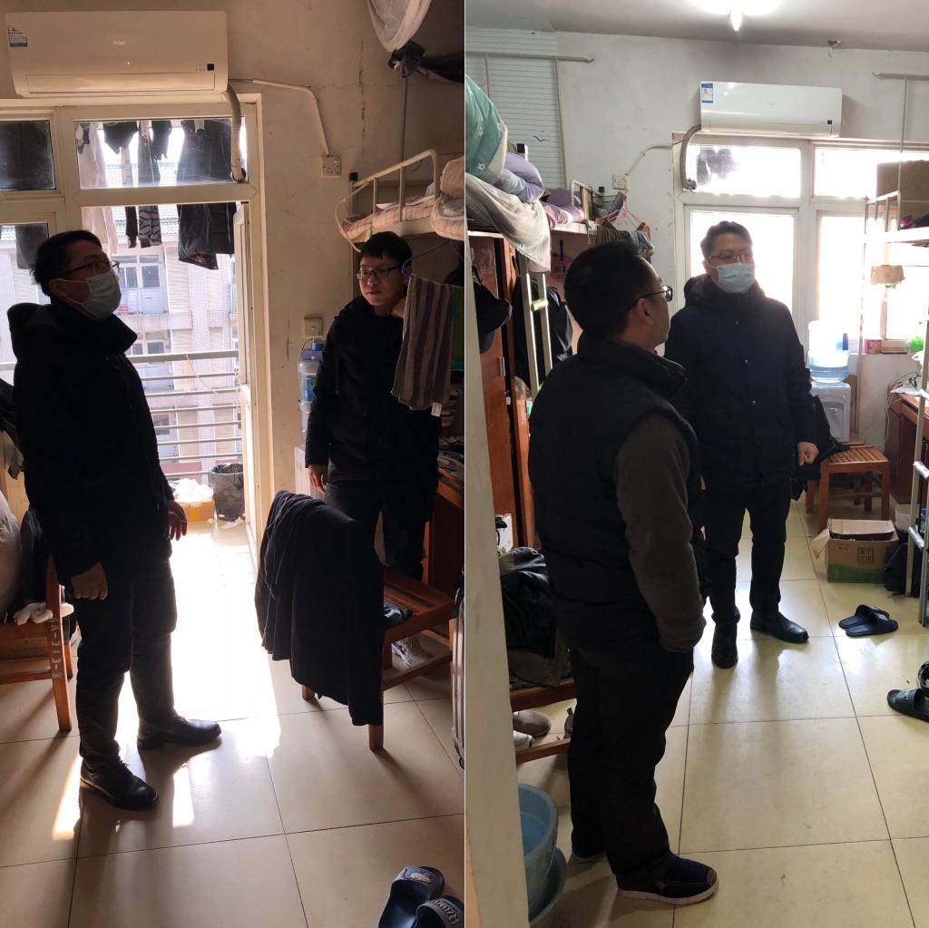 在1月4日下午,党委副书记刘韦再次携全体辅导员深入学生寝室摸排学生离校情况,刘韦副书记首先仔细询问宿管人员学生离校是否都已登记,其次对于个别将在1月5日当天离校的学生,仔细询问他们的车次等详细情况,最后再次携带各年级辅导员逐层逐户检查宿舍封条张贴情况。