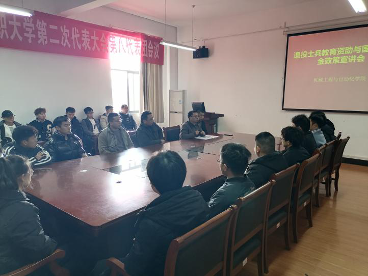 近日,湖北省资助中心下发了《关于认真做好退役士兵教育资助资金发放和自查工作的通知》(鄂学助〔2021〕4号),为落实好以上文件精神,确保服兵役士兵资助政策落实到位、资助资金发放到位,机械工程与自动化学院结合学校资助中心具体指示要求,于12月14日在学院会议室开展了退役士兵教育资助、国家助学金政策宣讲会。学院党委副书记刘韦、资助负责人梁祥云、团委书记方林以及全体退役大学生、有意入伍的同学参加了本次宣讲会。