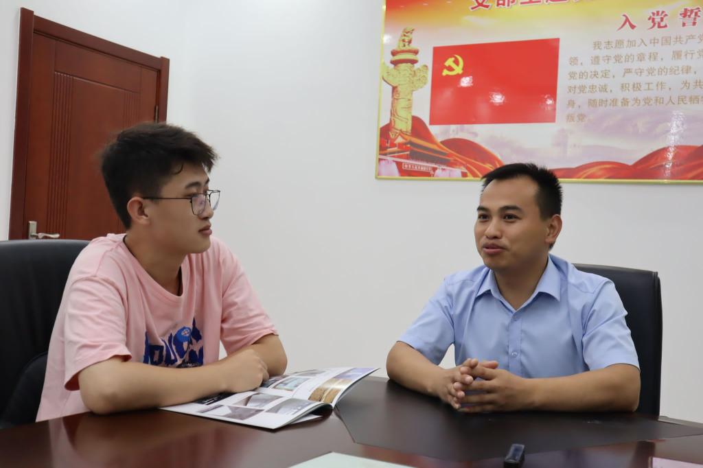 随后,团队采访了金兰特材研发部部长杨先生。杨部长2008年毕业于合肥工业大学,一直从事爆炸焊接行业至今。从基层做到研发部部长,从业时间长,对企业了解程度高。他指出,八成毕业生会面临就业专业不对口,要勇于尝试,根据自己的特色选择就业岗位,只有对工作进行更深入的实践了解,不断挖掘自己的能力,才能判断自身是否合适。大学生在校应打好基础,出校后注重实际,个人应当自律,克服浮躁心理。