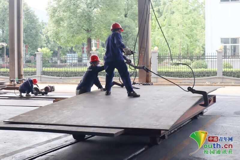 图为工厂中工人们正在对已加工的合金向外运输进行打磨的过程。中国青年网通讯员 吴家萱 供图