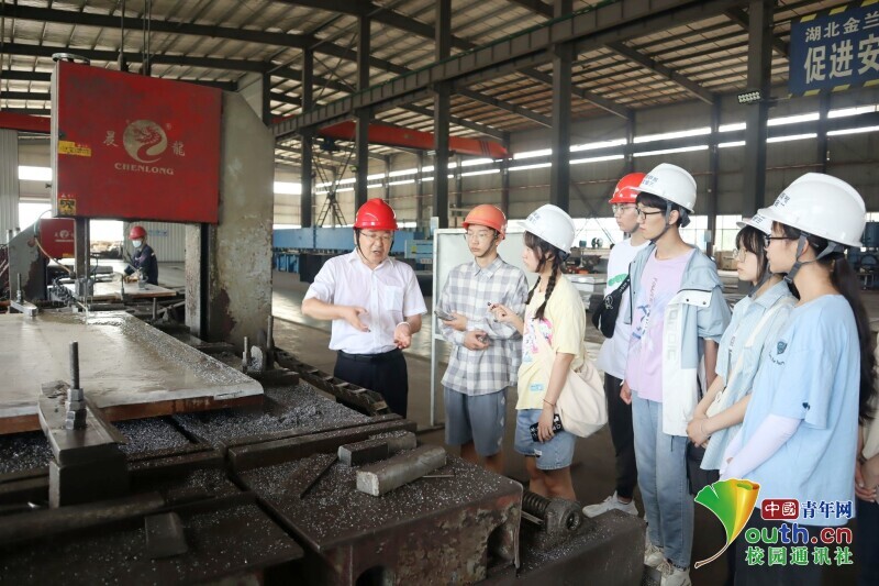 图为金兰特材领导为实践团队讲解生产产品。中国青年网通讯员 吴家萱 供图