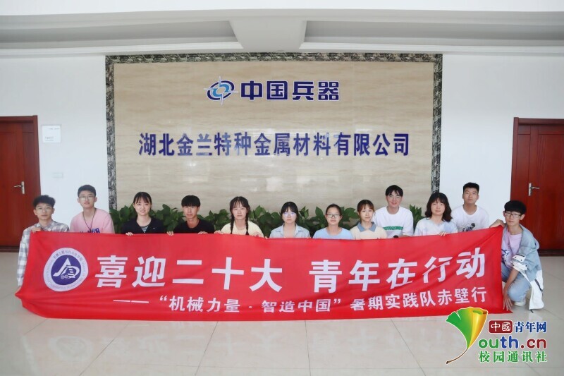图为实践团队在湖北金兰特种金属材料有限公司办公楼大厅的合影留念。中国青年网通讯员 吴家萱 供图