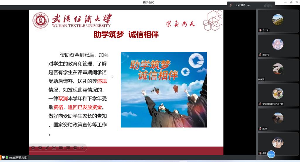 9月中旬至11月上旬,学院多次召开资助政策宣讲主题会议。各年级班主任和辅导员采取线上、线下的形式,开展主题班会、年级会议和资助评议组成员会议,将国家资助政策分条列点向同学们详细讲解,帮助同学们分析各类奖助学金的申请条件,提醒同学们按照规范进行申请。会上,老师们重点强调,监督评议材料真实、过程公平公正、评议结果公开透明,教育引导学生在获得奖助学金后,要合理分配资金支出,抵制铺张浪费、大手大脚等情况,要把钱花在“刀刃”上,支撑学业,帮助家庭减轻经济负担,多在提升学习能力和综合素质能力上下功夫。