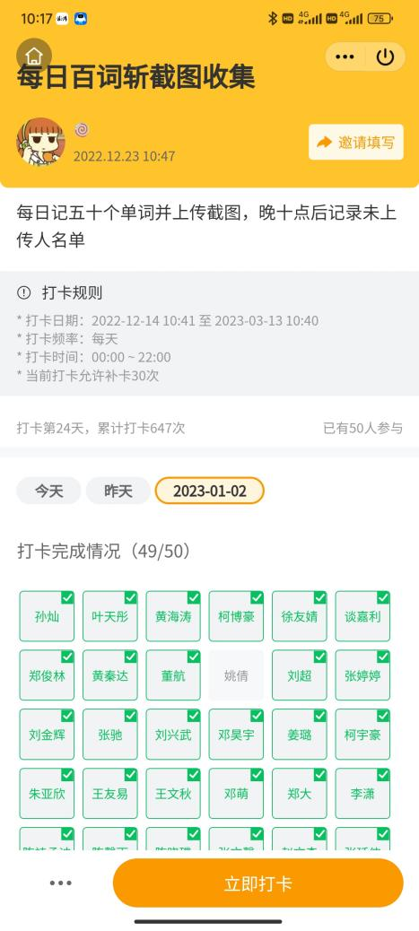 单词的积累是语言学习的基础和前提,通过每日背记单词可以养成良好的学习习惯,同学们不仅扩充了自己的词汇量,也锻炼了坚韧的意志力,为今后的学习提升和职业发展打下了坚实的基础。