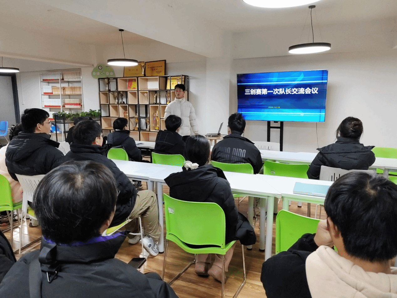 为了推进三创赛进程,讨论选题等相关内容,帮助同学们解决报名流程等问题,williamhill英国中文于2023年12月19日晚在williamhill英国中文“机智过人”学生成长服务站举行williamhill英国中文三创赛队长交流会,张庆乐同学主持,各队伍队长参加。
