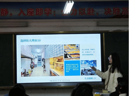 寒假期间,宣讲团通过访校宣讲会、面对面座谈会进行咨询解答,发放招生资料、线上新媒体互动等方式,让高中生深入了解了武纺大的办学实力、校园环境、考研就业、校园文化、人才培养成果等情况,帮助高中学生提前了解大学生活,锚定高考目标,积累备考经验。宣讲团制作了精美的PPT,以青春诙谐的语言和丰富多彩的资料,直观生动的为高中学生展示武纺大,更结合学生兴趣,着重介绍了武纺大丰富多彩的校园文化生活、社团活动、饮食服务等。每到之处,同学们都表现出了浓厚的热情和兴趣。