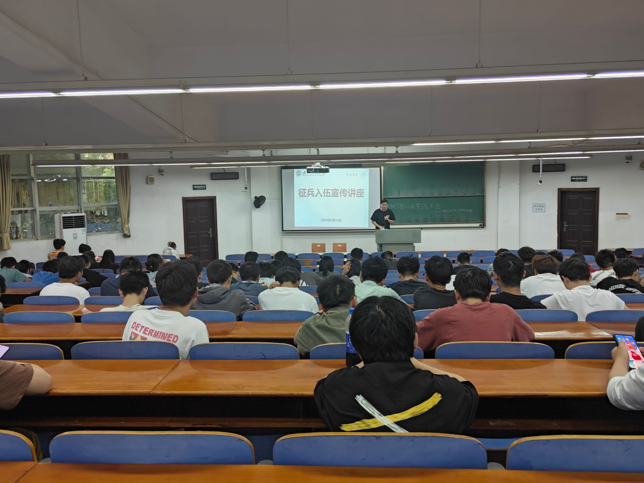 2023级退役士兵王盛乾作为本次征兵朋辈宣讲员,分享军旅感悟时激动不已:“用热血书写青春,用生命践行忠诚!唯有让更多高素质青年汇聚军营,才能为实现中华民族伟大复兴的中国梦提供坚强安全的保证!”王盛乾同学对军营生活精彩描绘,激发机械学子对参军入伍的热情。随后,王盛乾同学强调了征兵政策的公平性和机会平等性,鼓励有志青年积极参军,为国家的建设和安全贡献自己的力量,他的解读让同学们对征兵政策有了更加全面的了解,为同学们做出决策提供了有益的参考。