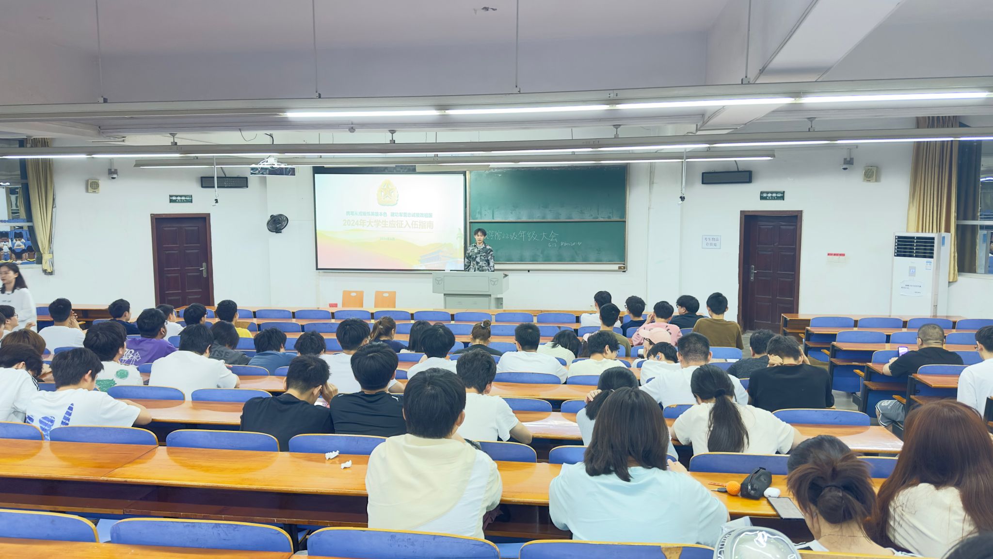 本次三个一活动分为三部分,召开了一次以“携笔从戎锤炼英雄本色,建功军营忠诚报效祖国”为主题的班会,辅导员主讲一堂政策宣讲课,组织一次退伍学生士兵朋辈交流活动。主题班会强调了大学生应征入伍的重大战略意义,现代化军队建设需要新时代大学生的加入。各年级辅导员详细宣讲了2024年参军政策,以往届优秀退役士兵为例鼓励同学们投身火热军营,创造精彩人生。