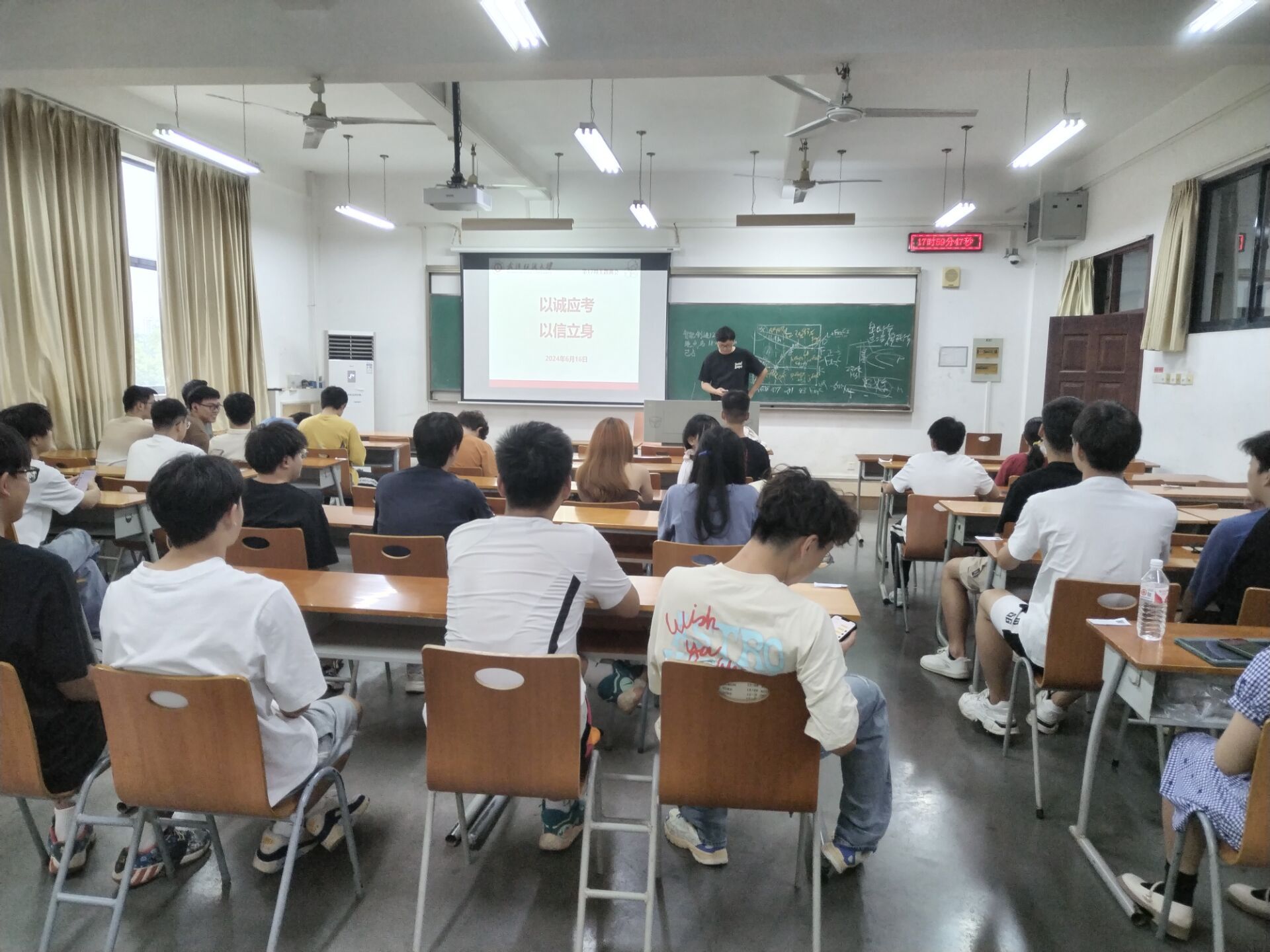 为了教育引导学生诚信应考,6月16日下午,williamhill英国中文开展《以诚应考·以信立身》主题班会,会议由各班班主任和辅导员主持,全体学生参会。