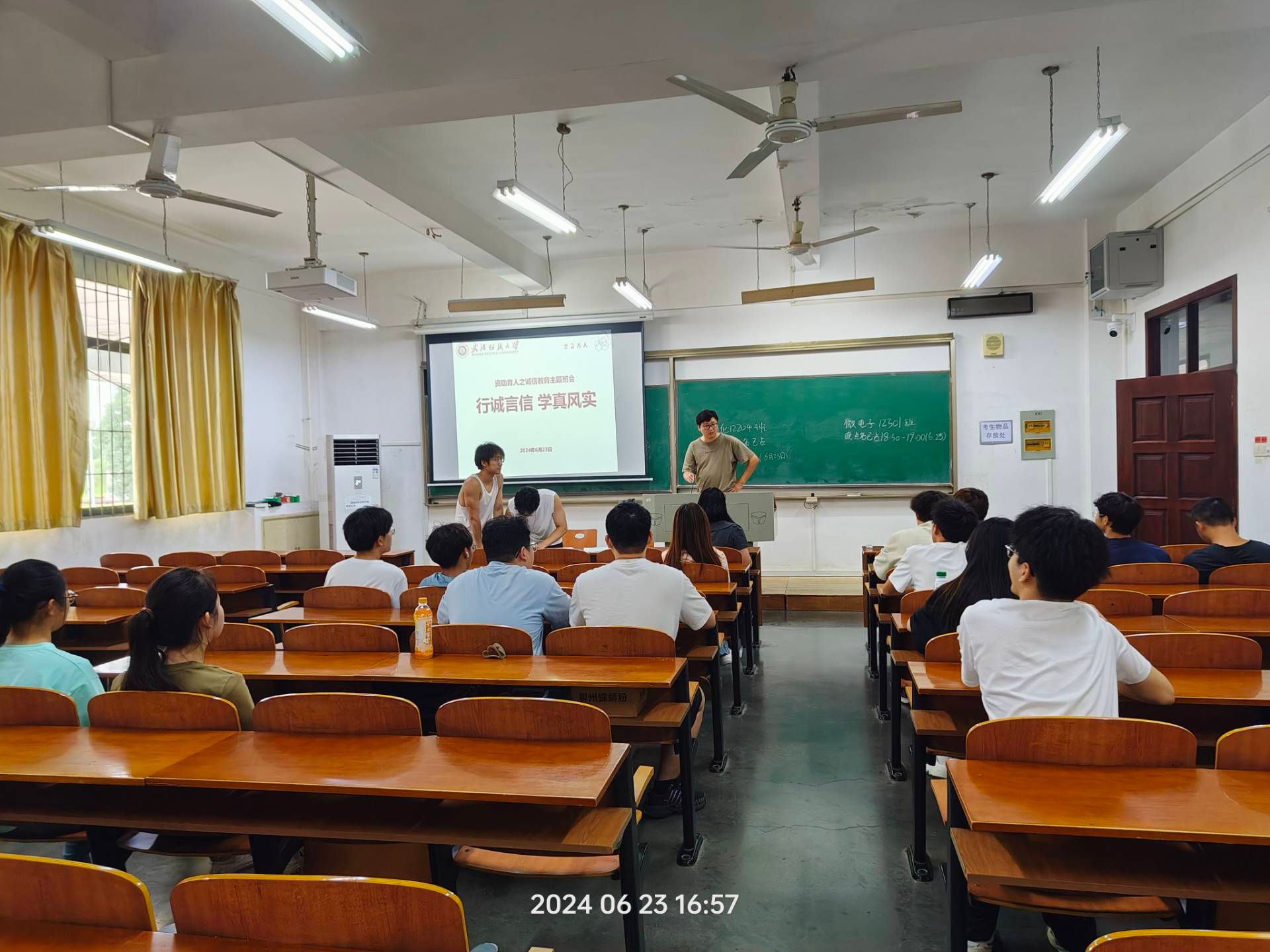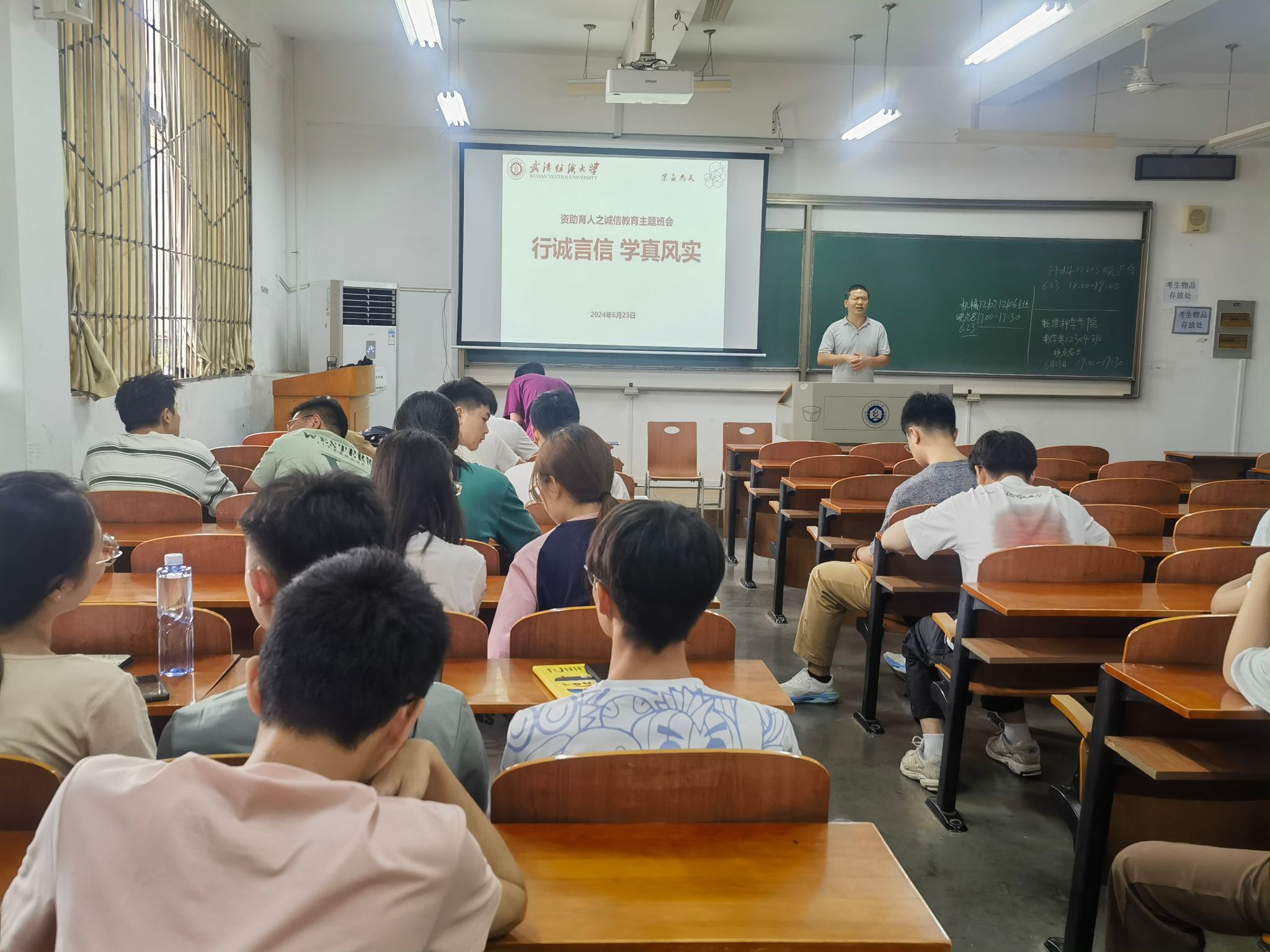 为教育引导学生遵守考试纪律,做诚信重诺的人,号召贷款毕业生诚信还贷,6月23日下午,williamhill英国中文开展“行诚言信 学真风实”主题班会。此次班会重点聚焦资助政策、诚信教育与防范电信诈骗知识。会议由各班班主任、辅导员主持,全体学生参会。